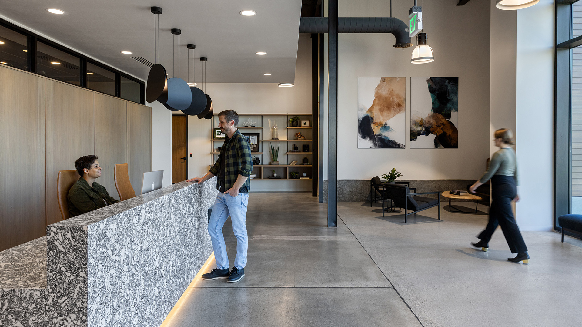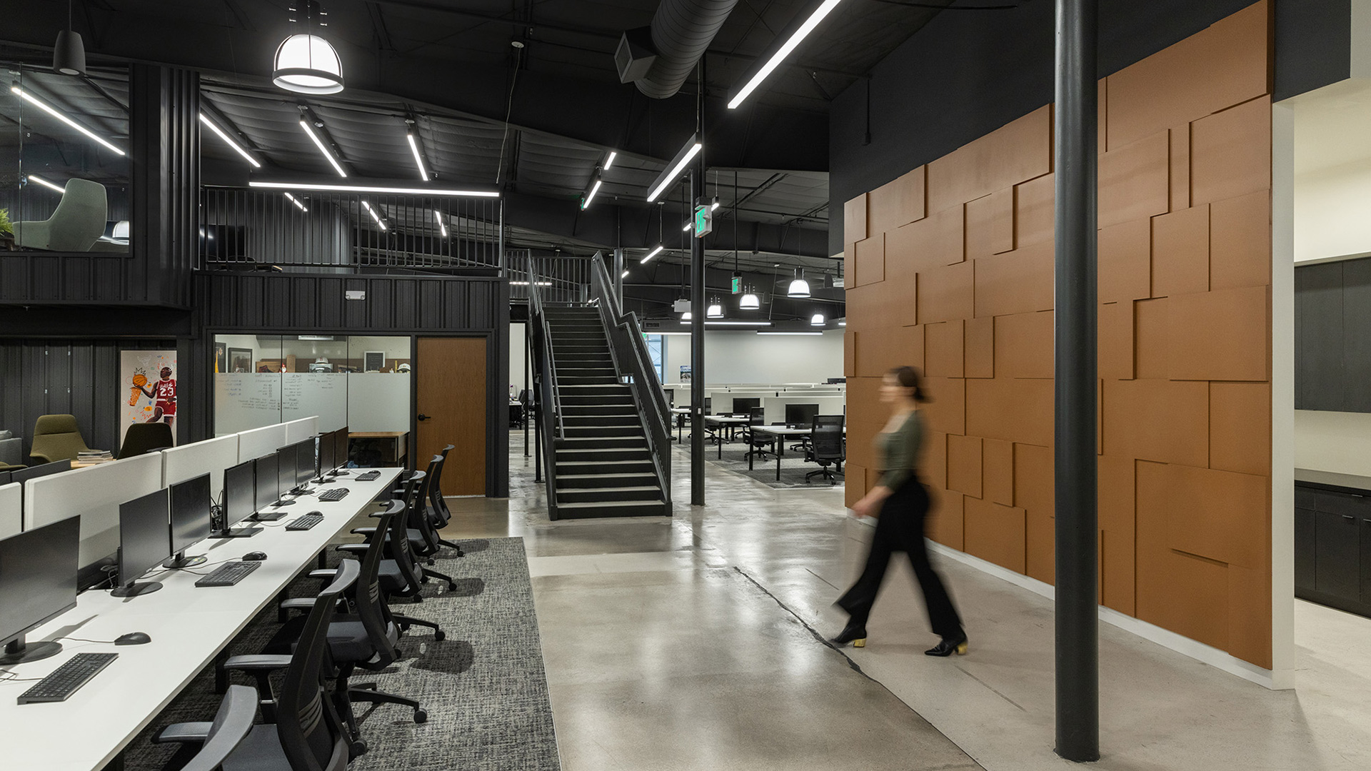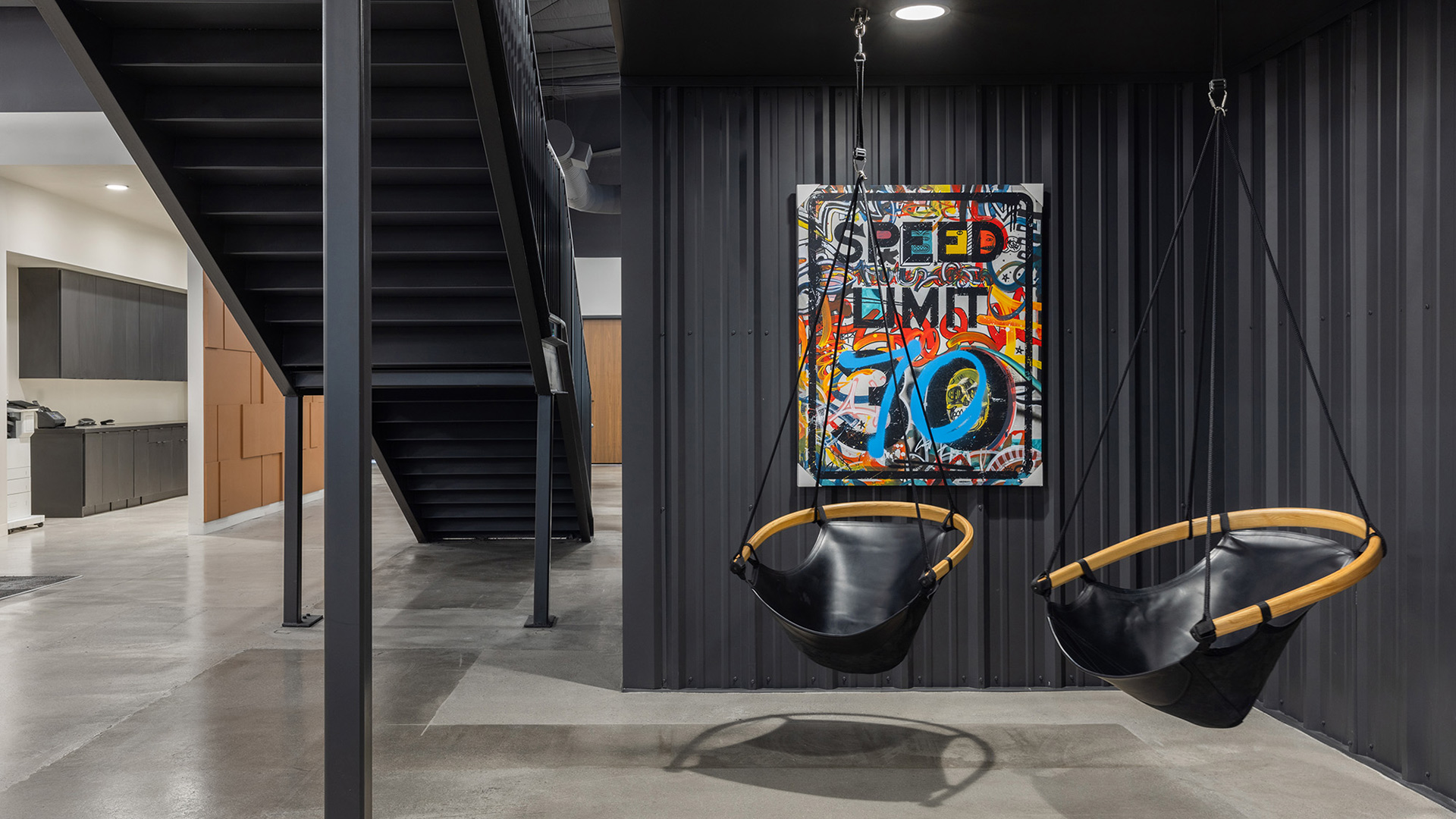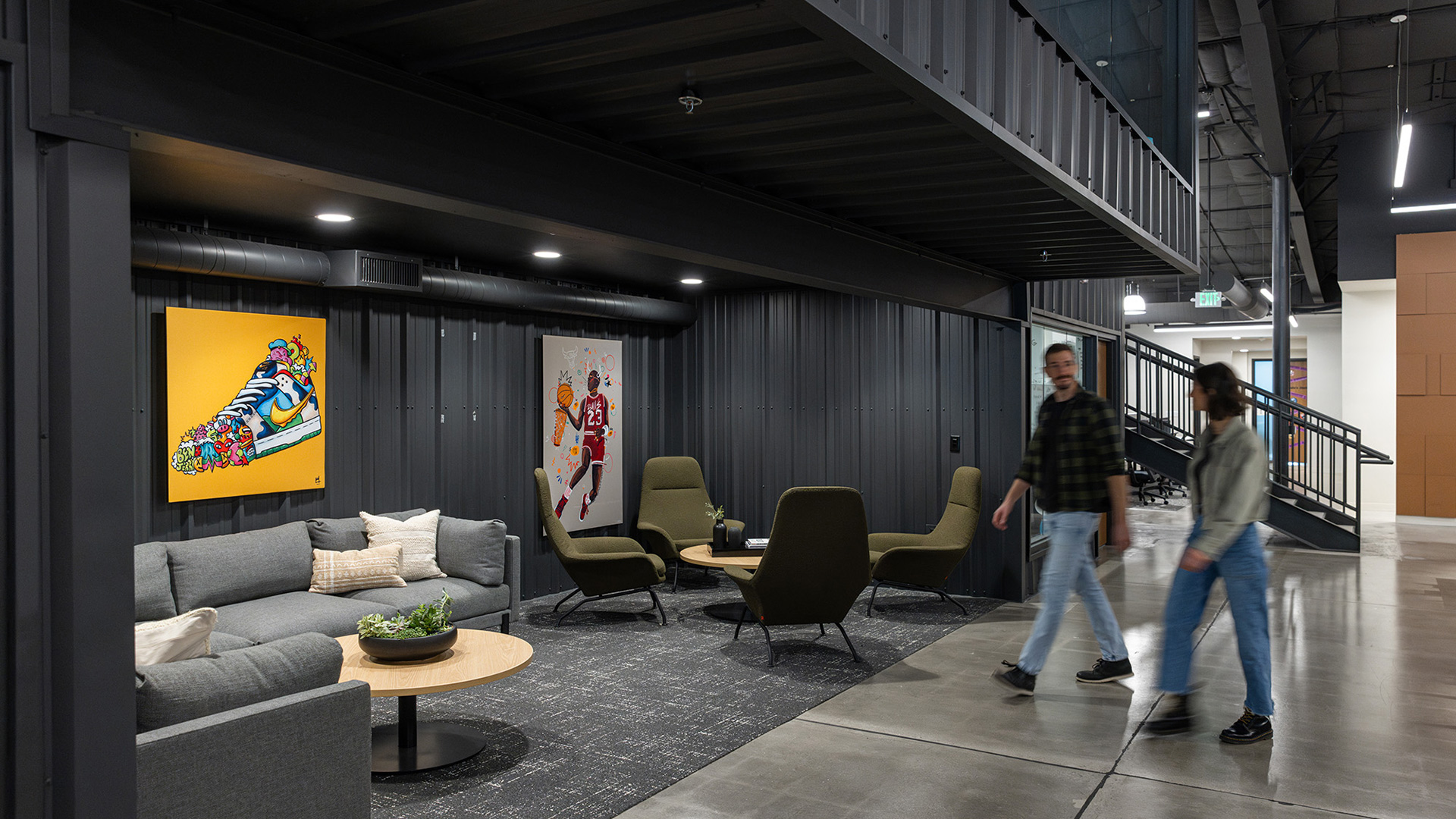 ION Solar, a fast-growing solar sales and installation company, needed a forward-thinking approach to their corporate office that was as flexible and adaptable as their business. The concept of urban design was pulled from the exterior of the existing building, first a grocery store and next a well-known gym that had an imprint on the community. Blending unlikely elements like shipping containers, concrete and pop art to pull the urban feeling was balanced with wood tones and more intimate gathering spaces. The floor plan was developed with flexibility and the ability to reconfigure in mind.