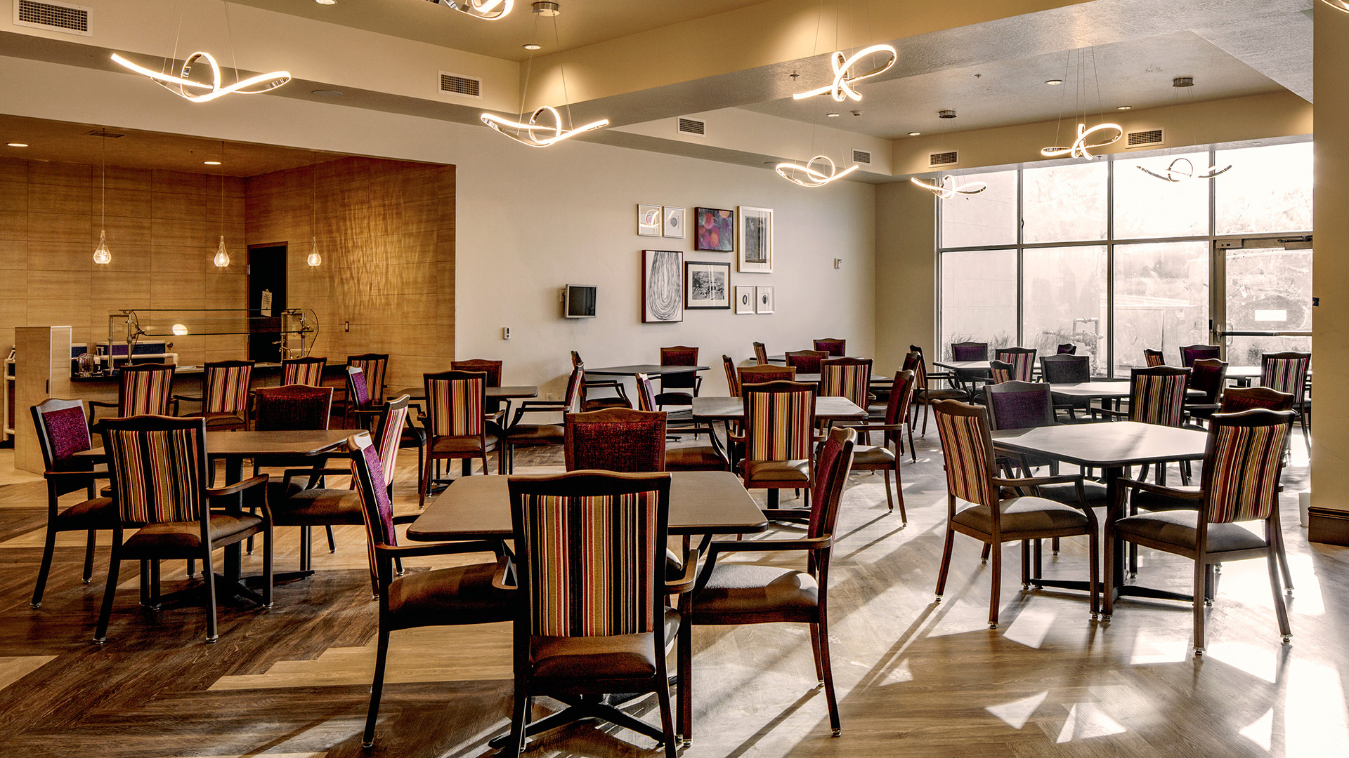 Pointe Meadows consists of in-house state-of-the-art therapy, skilled nursing, and stay activities for residents. This facility's modern yet homey feel has a large walking path around the building, high ceilings in the lobby and ample natural lighting throughout, creating a vibrant and healthy environment for its users. This hospitality-inspired design has a multi-activity area, a large physical therapy area, a beautiful chapel and a theater for entertainment. The large group dining room provides a comfortable eating experience, and a private dining area will give visitors a pleasant place to visit their loved ones.
