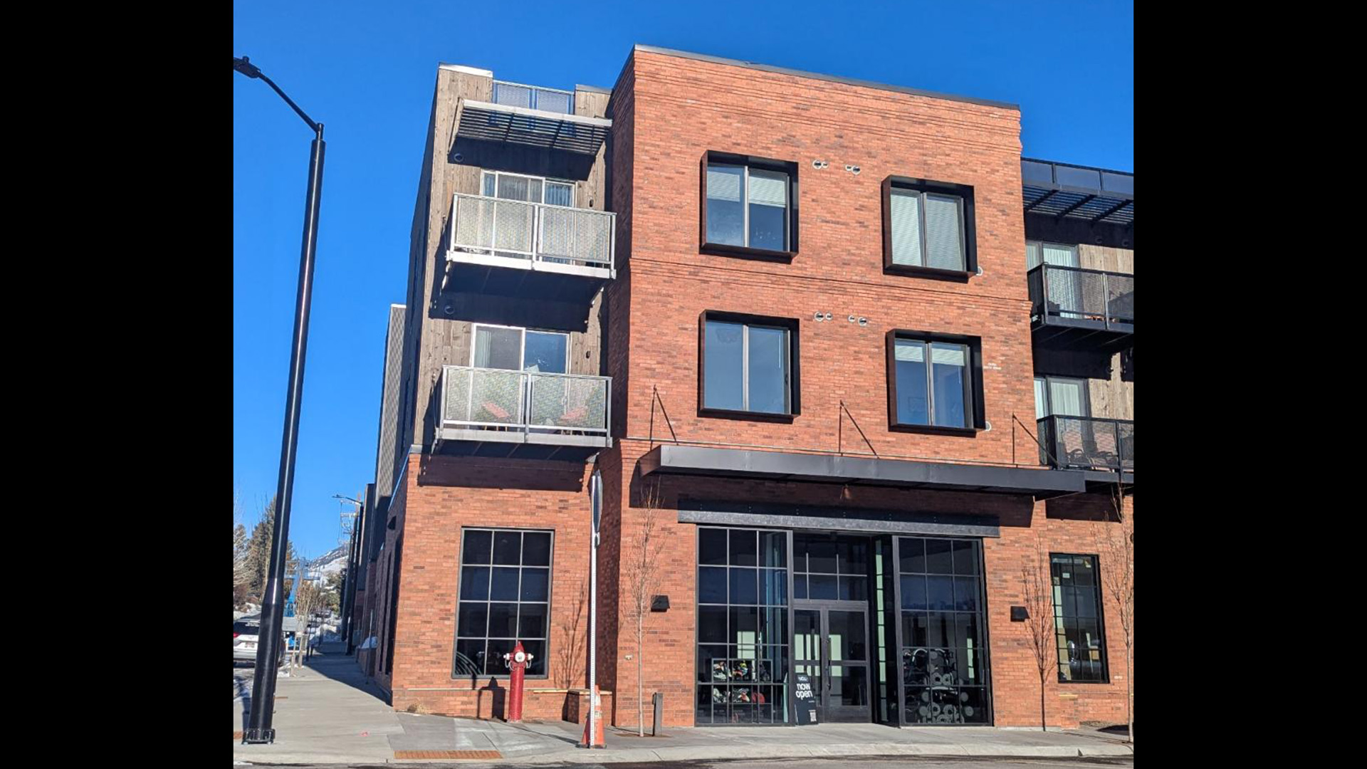 Residents enjoy modern amenities, including a rooftop terrace with Sawtooth Mountain views, a multi-purpose room for events or remote work, and a fitness center. Sustainability features like rooftop solar panels and green roofs reduce energy use, reflecting a commitment to eco-conscious living.