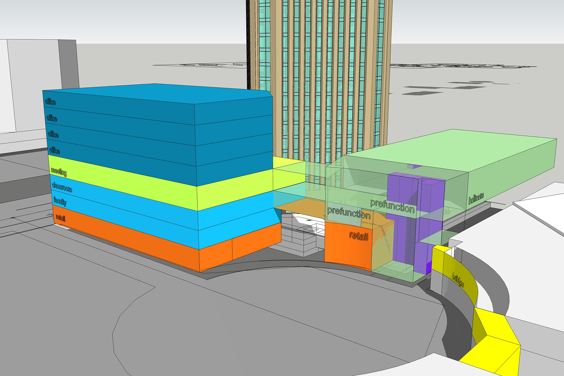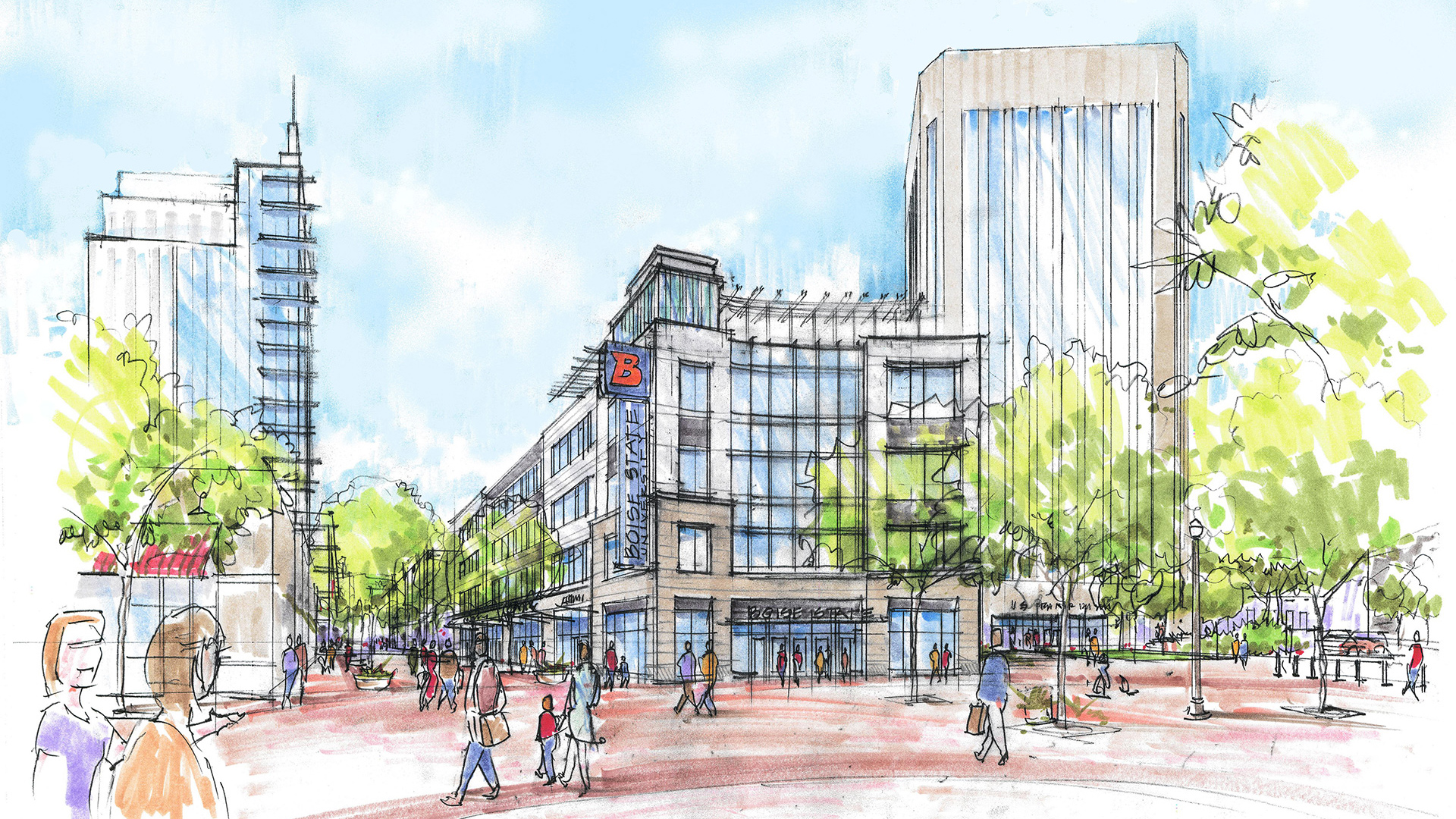 City Center Plaza in Boise is the definition of unique and complex. 371,000 sf of dense mixed-use, including a transit hub, retail and restaurants, offices and classrooms for Boise State University, emerging software technology offices, and convention center space — all overlooking the most prominent public space in downtown Boise. Every project has multiple end users — often intent on pulling in different directions. As the leader of the design team, our role was to analyze the specific space criteria for each of the various entities and then synthesize the information to produce a cohesive and organized design.