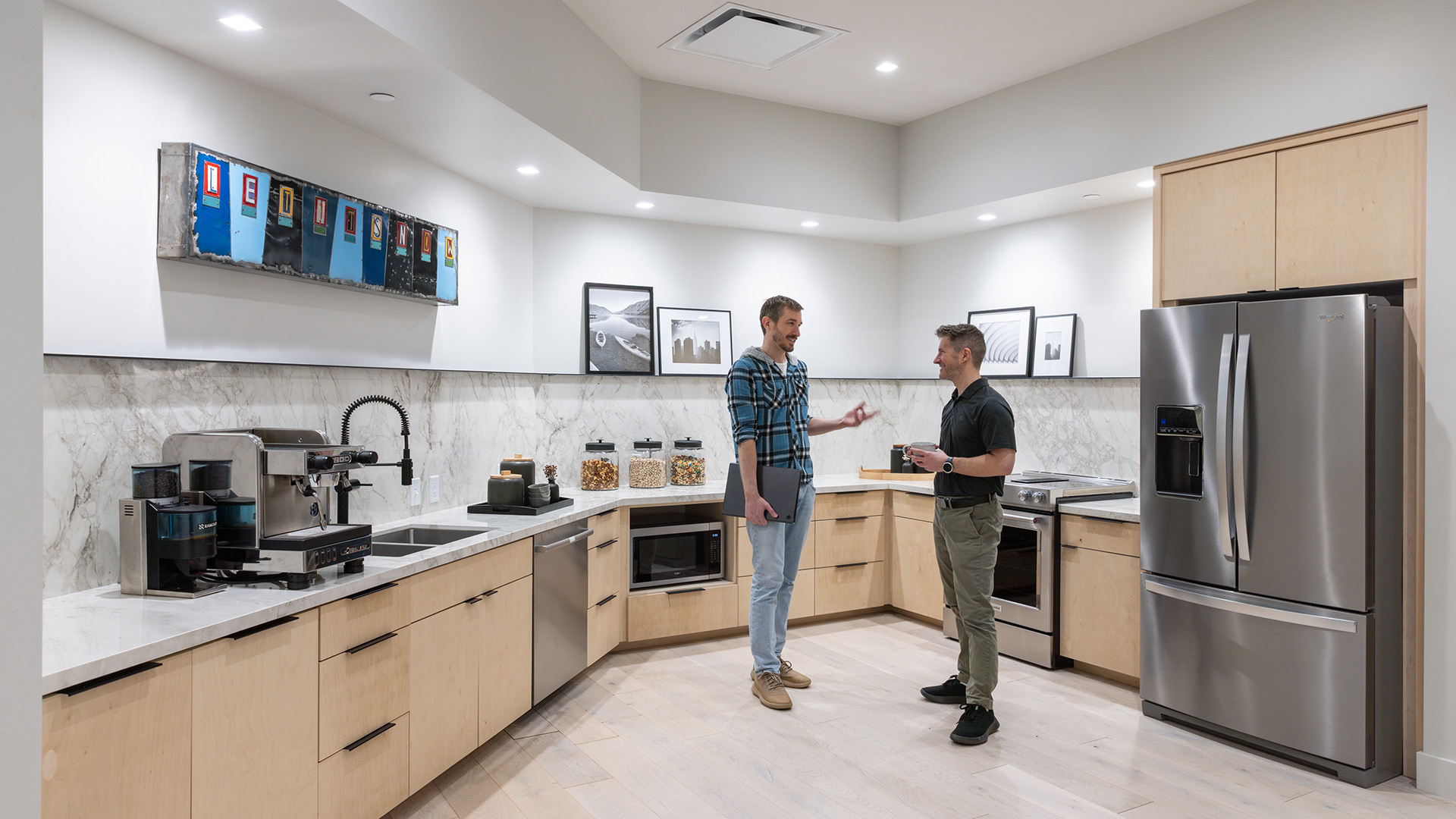 Powdr's business is extreme sports entertainment, and their office doesn't pretend otherwise. The challenge was balancing that playful, adventurous energy with the professionalism their clients expect — and the result is a space that holds both without apology. Dedicated floors and zones serve each department independently, while shared collaboration spaces bring the whole company together around a unified culture. Throughout, unexpected elements and striking contrasts of color and texture weave Powdr's identity into every corner — including, yes, a full skate ramp in the common area. It's an office that takes the work seriously and the culture even more so.