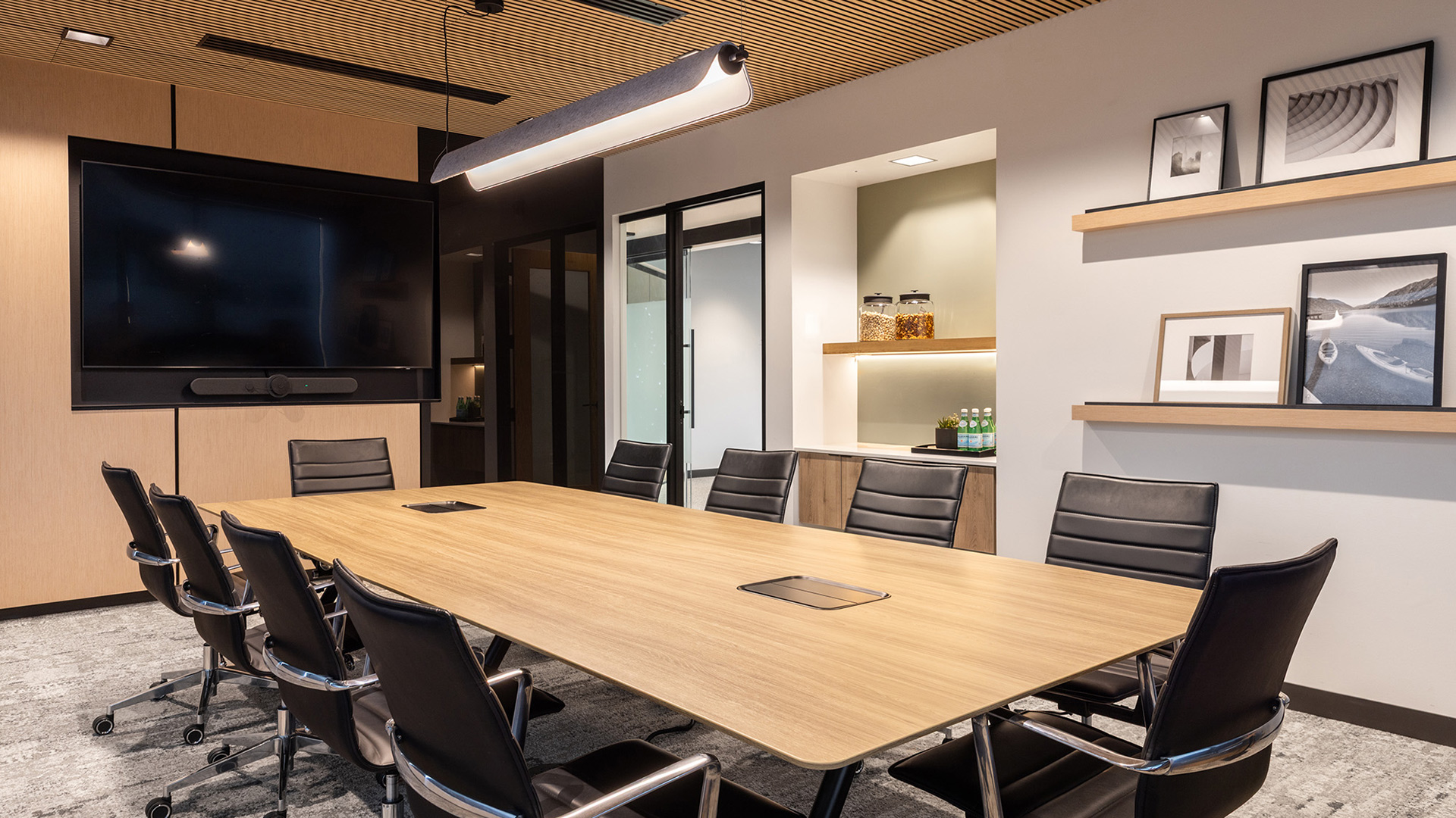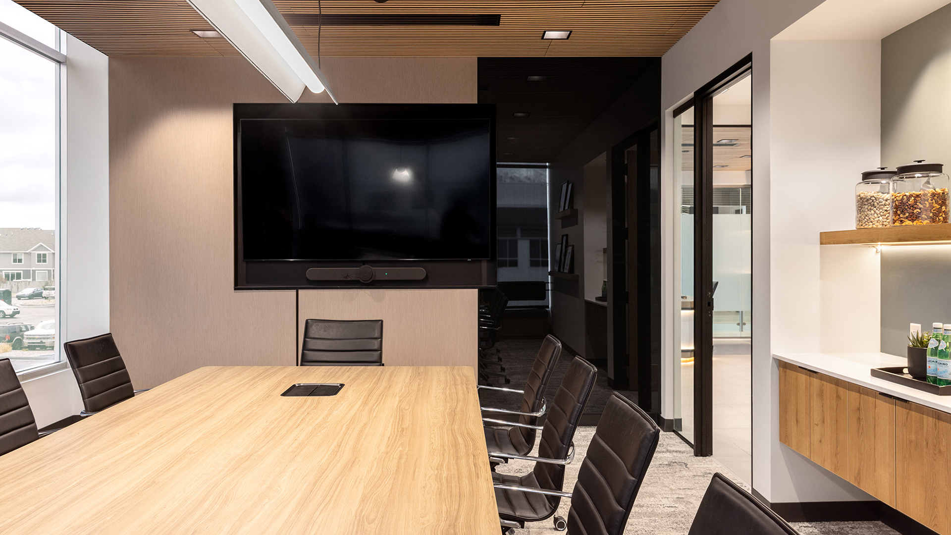 WPI's Lehi office reflects what you'd expect from a developer with a practiced eye: a space that's warm without being casual, refined without being stiff. Natural wood millwork, sage accents, and carefully chosen finishes bring texture and calm to an efficient open plan, while glass-walled conference rooms frame views of the Wasatch that do the decorating themselves. It's a tenant improvement that understands the difference between a space that looks good and one that works well — and delivers both.