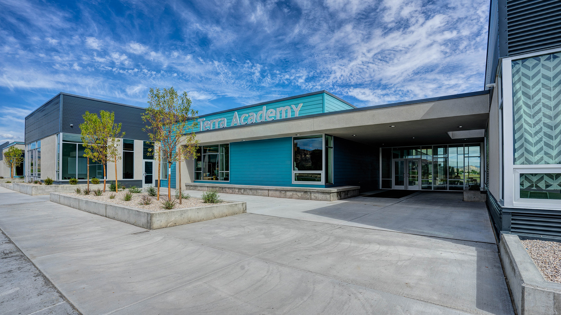 Terra Academy in Vernal operates on a conviction that education extends well beyond the classroom — and the building reflects that from the ground up. The 29-classroom K-12 charter school integrates dedicated spaces for art, music, and science alongside a commercial kitchen that supports the school's Edible Schoolyard and Farms to Schools programs, linking nutrition directly to student wellness and academic achievement. Natural light is treated as a core design element throughout, informed by research showing its measurable impact on student performance and health. The result is a school that is human-centered and environmentally conscious in equal measure — a facility that takes as seriously what happens outside the lesson plan as what happens in it.