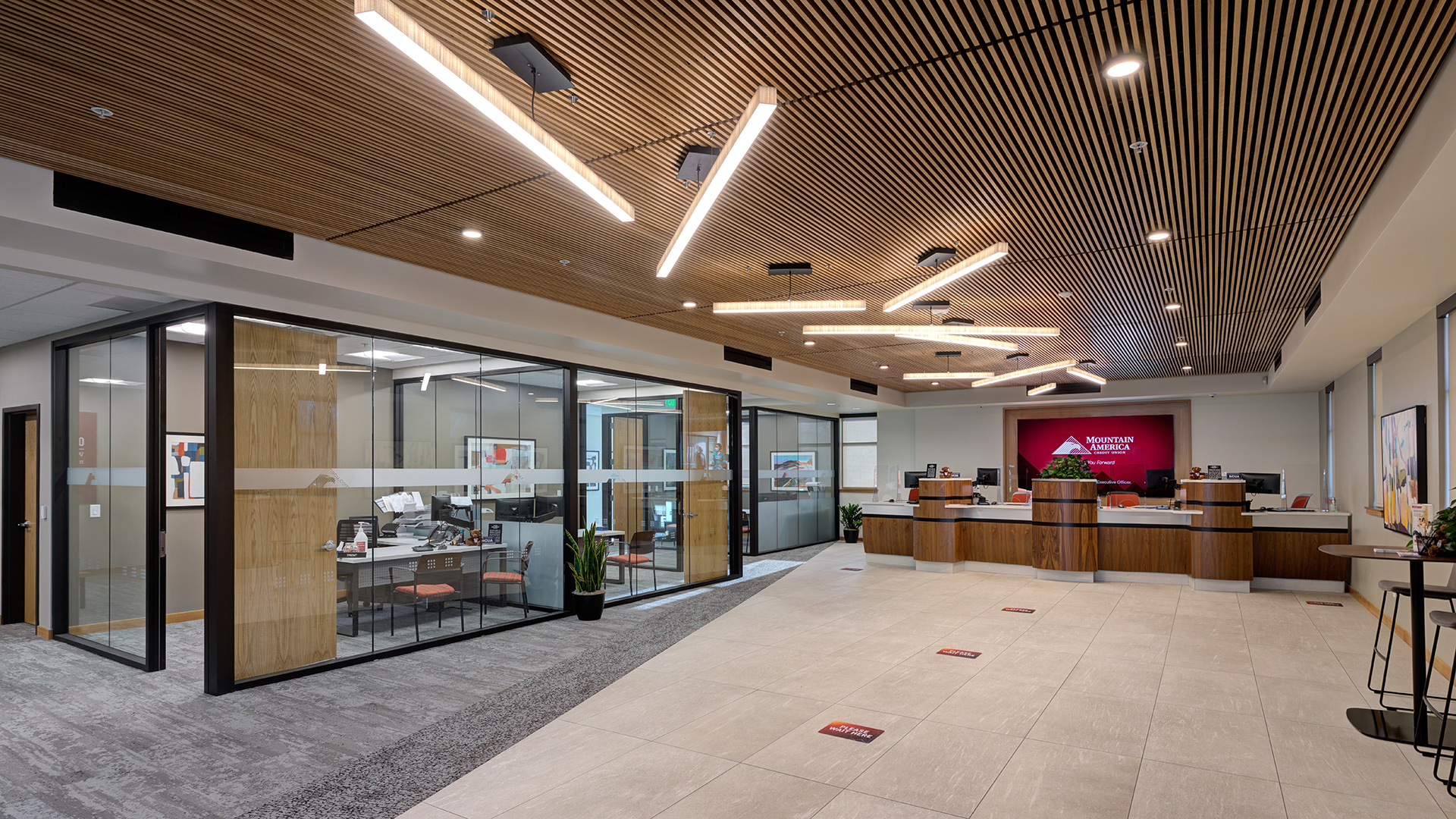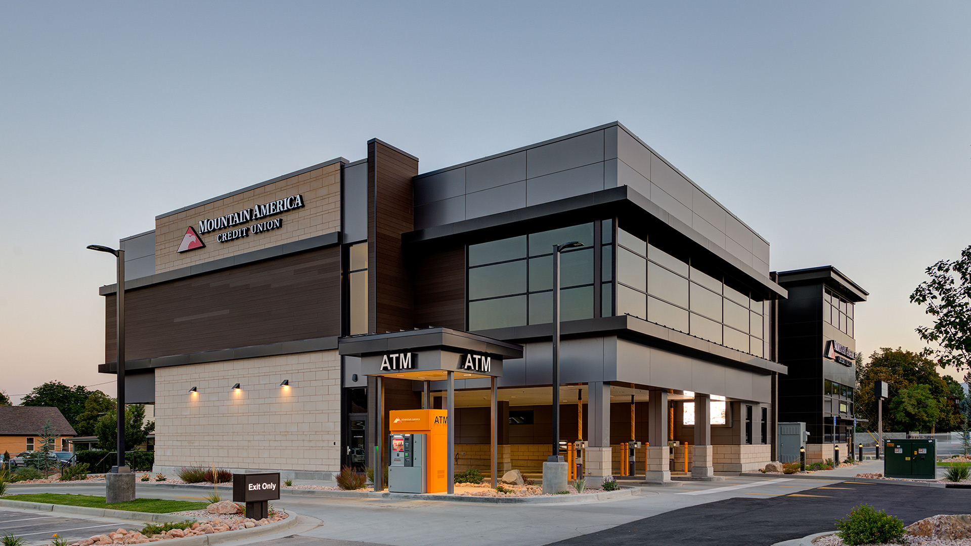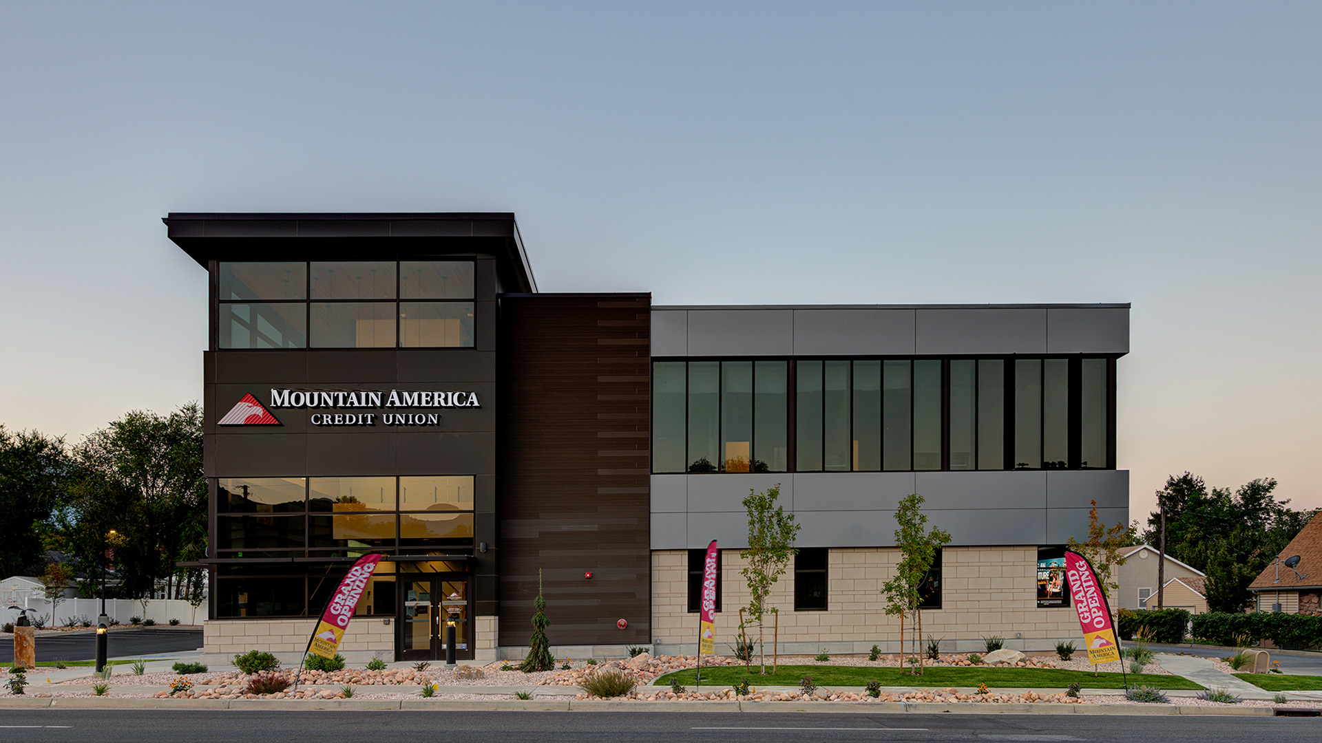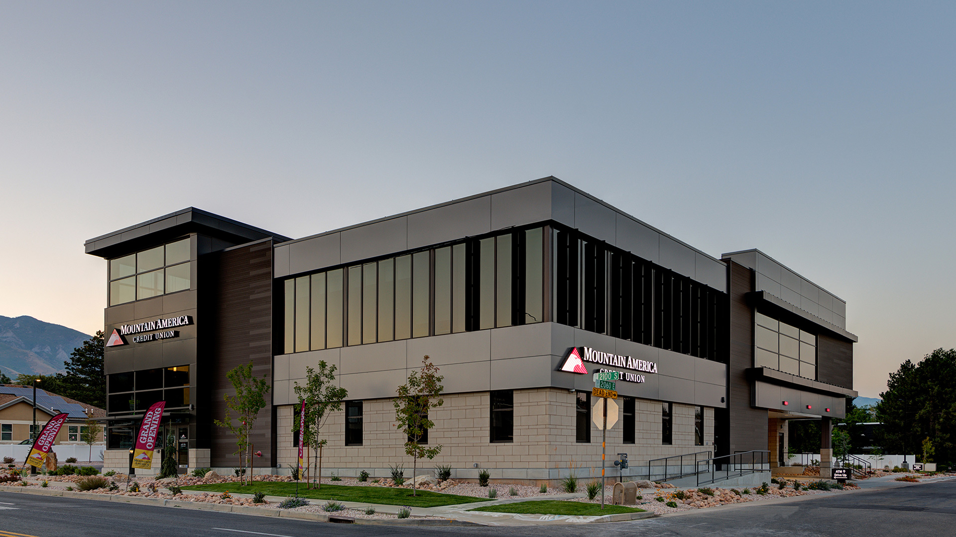The Sugar House Branch for Mountain America Credit Union is a 15,000 SF 2-story facility that houses a branch for local members and accommodates a portion of the building for leasing. The design of this facility is one of the new “mountain modern” design schemes that reflect the geometry of the surrounding Wasatch Front yet capture materials of the modern era. The facility accommodates members who approach the facility in a vehicle and those who want to walk up and complete in-person transactions. Leasing space is available on the second level and invites one to enjoy vistas of the surrounding neighborhood.